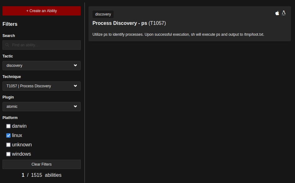 Tactic, Technique, Plugin, Platform 선택으로 필터링