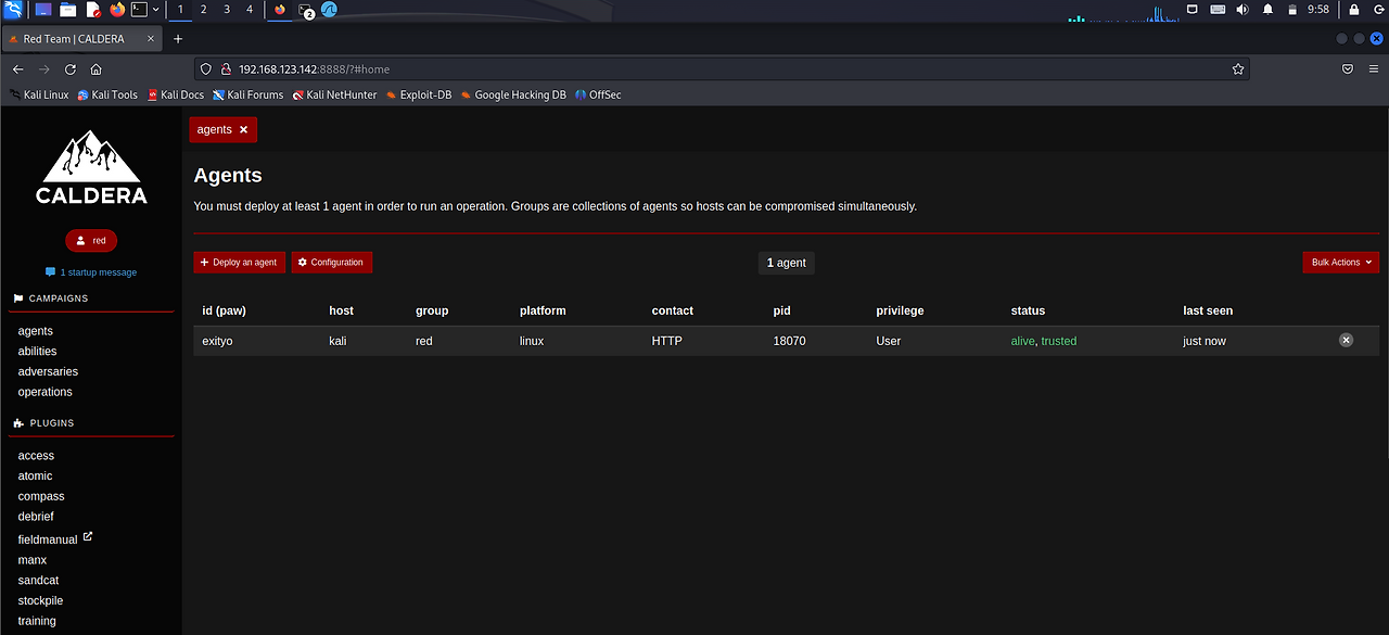 - agent를 수동으로 시작/종료하기 위한 역셀 페이로드와 함께 Caldera에 대한 셀 액세스 제공